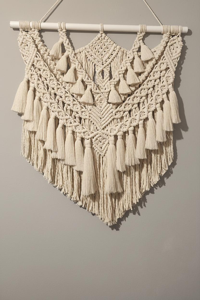 Un arazzo in macrame che porta un tocco di natura e creatività a qualsiasi ambiente. Ordina ora e scopri la bellezza di questo pezzo unico!